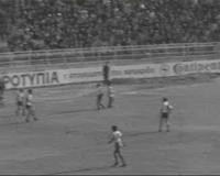Στιγμιότυπα του αγώνα ποδοσφαίρου ΠΑΝΑΧΑΪΚΗ-ΑΕΚ (0-0) για το Πρωτάθλημα 1974-1975. Διακρίνονται οι παίκτες ΜΙΜΗΣ ΠΑΠΑΪΩΑΝΝΟΥ, ΓΙΩΡΓΟΣ ΔΕΔΕΣ, ΛΑΚΗΣ ΝΙΚΟΛΑΟΥ.