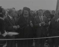 Ο Υφυπουργός Προεδρίας της Κυβερνήσεως ΑΧΙΛΛΕΑΣ ΚΑΡΑΜΑΝΛΗΣ θεμελιώνει το Αθλητικό Κέντρο Νέου Φαλήρου. Παρίστανται οι Υπουργοί Δημοσίων Έργων ΧΡΙΣΤΟΦΟΡΟΣ ΣΤΡΑΤΟΣ και Εμπορίου...