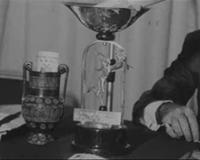 Ο Πρόεδρος της ΑΕΚ ΛΟΥΚΑΣ ΜΠΑΡΛΟΣ βραβεύει τον ποδοσφαιριστή της INTER ΙΤΑΛΙΑΣ ΣΑΝΤΡΟ ΜΑΤΣΟΛΑ (SANDRO MAZZOLA). Στην πρώτη σειρά καθισμένος ο ΤΖΙΑΝΝΙ...