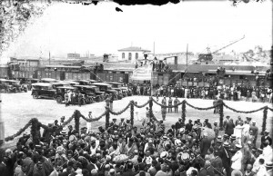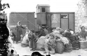 Πρόσφυγες από τη Μικρά Ασία σε σιδηροδρομικό σταθμό