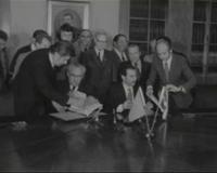 Ο Πρέσβης της ΕΝΩΣΗΣ ΣΟΒΙΕΤΙΚΩΝ ΣΟΣΙΑΛΙΣΤΙΚΩΝ ΔΗΜΟΚΡΑΤΙΩΝ (ΕΣΣΔ) στην ΑΘΗΝΑ ΙΒΑΝ ΟΥΝΤΑΛΤΣΟΦ (IVAN UDALTSOV) και ο Υφυπουργός Εξωτερικών ΚΩΝΣΤΑΝΤΙΝΟΣ ΤΡΙΚΟΥΠΗΣ υπογράφουν συμφωνία...