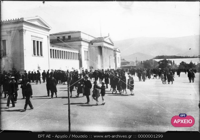 ΑΘΗΝΑ. ΓΕΝΙΚΗ ΑΠΟΨΗ ΤΟΥ ΖΑΠΠΕΙΟΥ ΜΕΓΑΡΟΥ ΠΡΟΣ ΤΗΝ ΠΛΕΥΡΑ ΤΗΣ ΑΙΓΛΗΣ. ΑΘΗΝΑΙΟI ΠΕΡΠΑΤΟΥΝ ΜΠΡΟΣΤΑ ΑΠΟ ΤΟ ΜΕΓΑΡΟ.