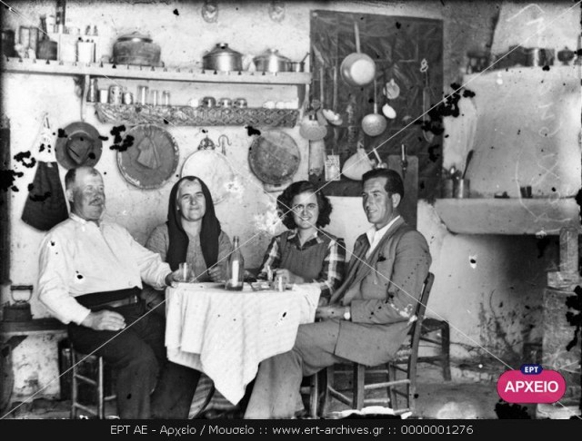 ΑΘΗΝΑ. ΑΠΟΨΗ ΕΣΩΤΕΡΙΚΟΥ ΣΠΙΤΙΟΥ ΜΕ ΤΖΑΚΙ ΚΑΙ ΠΑΡΑΔΟΣΙΑΚΟ ΔΙΑΚΟΣΜΟ. ΟΙΚΟΓΕΝΕΙΑ ΚΑΘΙΣΜΕΝΗ ΣΤΟ ΤΡΑΠΕΖΙ.