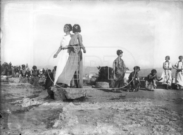 ΑΘΗΝΑ. ΚΟΠΕΛΕΣ ΜΕ ΑΡΧΑΙΟΕΛΛΗΝΙΚΕΣ ΕΝΔΥΜΑΣΙΕΣ ΣΕ ΑΝΑΜΝΗΣΤΙΚΗ ΦΩΤΟΓΡΑΦΙΑ ΜΕΤΑ ΤΟ ΤΕΛΟΣ ΥΠΑΙΘΡΙΑΣ ΠΑΡΑΣΤΑΣΗΣ.
