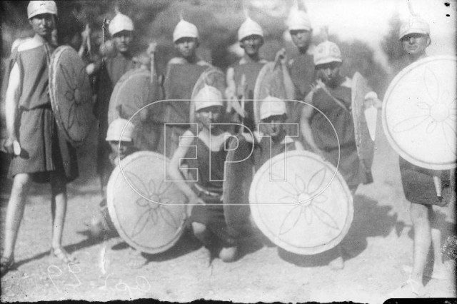 ΑΘΗΝΑ. ΝΕΑΡΑ ΑΓΟΡΙΑ ΜΕ ΑΡΧΑΙΟΕΛΛΗΝΙΚΕΣ ΕΝΔΥΜΑΣΙΕΣ, ΣΠΑΘΙΑ ΚΑΙ ΑΣΠΙΔΕΣ ΣΕ ΑΝΑΜΝΗΣΤΙΚΗ ΦΩΤΟΓΡΑΦΙΑ ΣΕ ΥΠΑΙΘΡΙΟ ΧΩΡΟ ΜΕΤΑ ΤΟ ΤΕΛΟΣ ΠΑΡΑΣΤΑΣΗΣ.