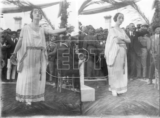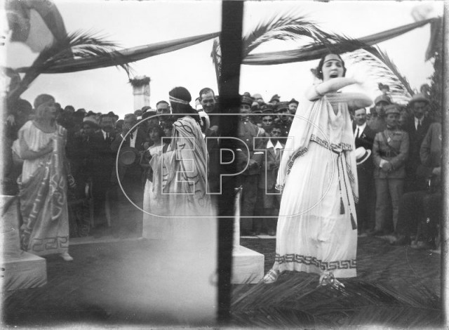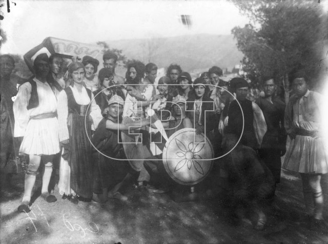 ΑΘΗΝΑ. ΑΓΟΡΙΑ ΜΕ ΑΡΧΑΙΟΕΛΛΗΝΙΚΕΣ ΕΝΔΥΜΑΣΙΕΣ ΚΑΙ ΚΟΡΙΤΣΙΑ ΜΕ ΠΑΡΑΔΟΣΙΑΚΕΣ ΣΤΟΛΕΣ ΣΕ ΑΝΑΜΝΗΣΤΙΚΗ ΦΩΤΟΓΡΑΦΙΑ ΜΕΤΑ ΤΟ ΤΕΛΟΣ ΥΠΑΙΘΡΙΑΣ ΠΑΡΑΣΤΑΣΗΣ.