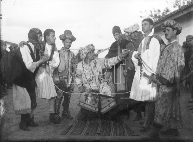 ΑΘΗΝΑ. ΑΝΔΡΕΣ ΜΕ ΠΑΡΑΔΟΣΙΑΚΕΣ ΕΝΔΥΜΑΣΙΕΣ KATA ΤΗ ΔΙΑΡΚΕΙΑ ΥΠΑΙΘΡΙΑΣ ΠΑΡΑΣΤΑΣΗΣ ΣΧΕΤΙΚΗΣ ΜΕ ΤΗΝ ΚΥΡΙΑΡΧΙΑ ΤΩΝ ΤΟΥΡΚΩΝ ΣΤΗΝ ΕΛΛΑΔΑ. ΔΙΑΚΡΙΝΟΝΤΑΙ ΑΝΔΡΕΣ-ΗΘΟΠΟΙΟΙ ΜΕ ΤΟΥΡΚΙΚΗ ΕΝΔΥΜΑΣΙΑ. ΠΙΣΩ ΤΟΥΣ ΣΤΡΑΤΙΩΤΕΣ ΠΑΡΑΚΟΛΟΥΘΟΥΝ.