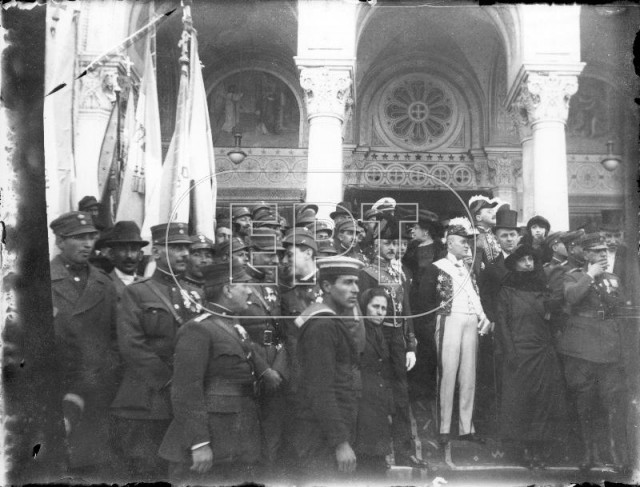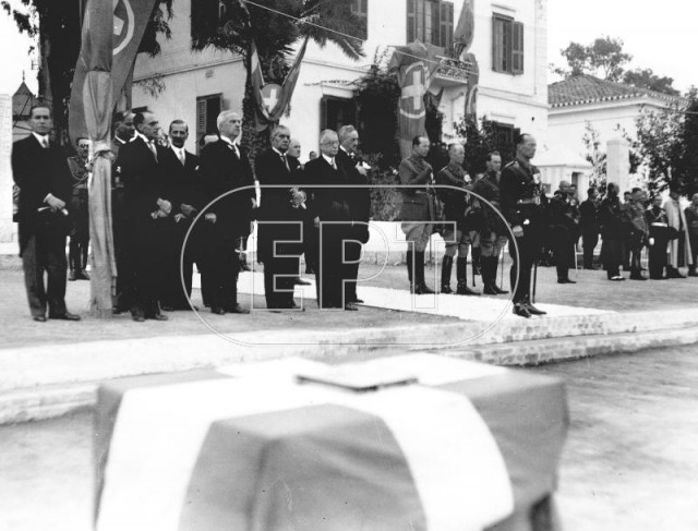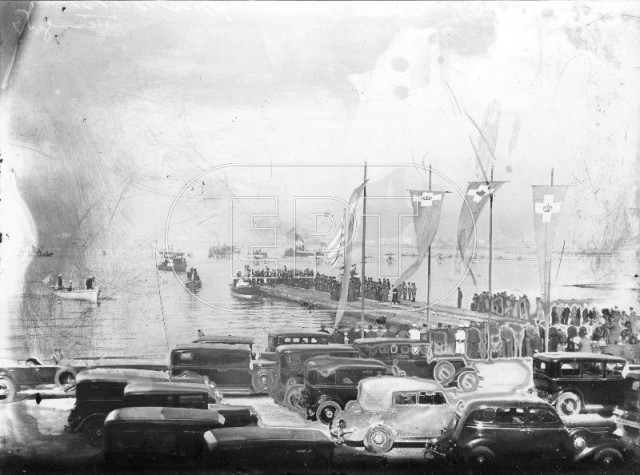 ΑΘΗΝΑ. ΓΕΝΙΚΗ ΑΠΟΨΗ ΑΠΟ ΤΗΝ ΕΞΕΔΡΑ ΣΤΟ ΦΑΛΗΡΟ ΚΑΤΑ ΤΗΝ ΗΜΕΡΑ ΕΠΙΣΤΡΟΦΗΣ ΑΠΟ ΤΗΝ ΕΞΟΡΙΑ ΤΟΥ ΒΑΣΙΛΕΙΑ ΓΕΩΡΓΙΟΥ Β ΥΣΤΕΡΑ ΑΠΟ ΤΗΝ ΠΑΛΙΝΟΡΘΩΣΗ ΤΗΣ ΜΟΝΑΡΧΙΑΣ. ΠΛΗΘΟΣ ΚΟΣΜΟΥ ΣΥΓΚΕΝΤΡΩΜΕΝΟ ΣΤΗΝ ΕΞΕΔΡΑ. ΔΙΑΚΡΙΝΟΝΤΑΙ ΣΗΜΑΙΕΣ ΜΕ ΤΟ ΣΤΕΜΜΑ ΣΤΗ ΜΕΣΗ. ΣΤΟ ΒΑΘΟΣ ΤΟ ΠΛΟΙΟ ΠΟΥ ΦΕΡΕΙ ΤΟ ΒΑΣΙΛΙΑ, ΑΤΜΑΚΑΤΟΙ, ΛΕΜΒΟΙ ΚΑΙ ΒΑΡΚΕΣ. ΣΤΑΘΜΕΥΜΕΝΑ ΑΥΤΟΚΙΝΗΤΑ.