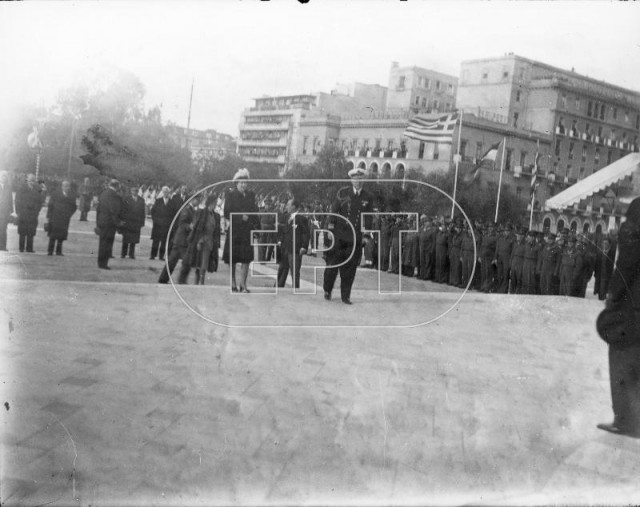 ΑΘΗΝΑ. ΠΛΑΤΕΙΑ ΣΥΝΤΑΓΜΑΤΟΣ. Ο ΒΑΣΙΛΙΑΣ ΠΑΥΛΟΣ ΚΑΙ Η ΒΑΣΙΛΙΣΣΑ ΦΡΕΙΔΕΡΙΚΗ ΣΤΟ ΜΝΗΜΕΙΟ ΤΟΥ ΑΓΝΩΣΤΟΥ ΣΤΡΑΤΙΩΤΗ ΚΑΤΑ ΤΗ ΔΙΑΡΚΕΙΑ ΕΚΔΗΛΩΣΗΣ. ΔΙΑΚΡΙΝΕΤΑΙ ΑΓΗΜΑ ΑΠΟ ΕΥΖΩΝΕΣ ΚΑΙ ΑΝΩΤΕΡΟΙ ΑΞΙΩΜΑΤΙΚΟΙ ΤΟΥ ΣΤΡΑΤΟΥ.