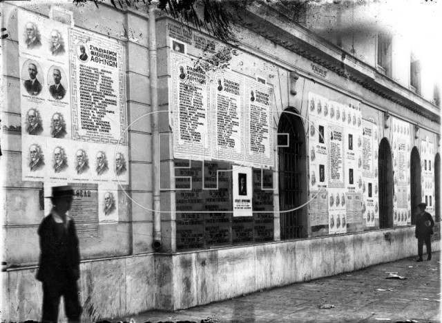ΑΘΗΝΑ. ΟΔΟΣ ΠΑΝΕΠΙΣΤΗΜΙΟΥ. ΑΠΟΨΗ ΤΟΥ ΕΚΛΟΓΙΚΟΥ ΚΕΝΤΡΟΥ ΤΟΥ ΚΟΜΜΑΤΟΣ ΤΩΝ ΦΙΛΕΛΕΥΘΕΡΩΝ ΜΕ ΦΩΤΟΓΡΑΦΙΕΣ ΤΟΥ ΕΛΕΥΘΕΡΙΟΥ ΒΕΝΙΖΕΛΟΥ ΚΑΙ ΑΛΛΩΝ ΥΠΟΨΗΦΙΩΝ. ΤΟΙΧΟΚΟΛΛΗΜΕΝΟΣ Ο ΣΥΝΔΥΑΣΜΟΣ ΦΙΛΕΛΕΥΘΕΡΩΝ ΑΘΗΝΩΝ. ΔΙΑΚΡΙΝΟΝΤΑΙ ΠΕΡΑΣΤΙΚΟΙ.