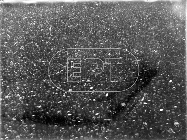 ΑΘΗΝΑ Η ΠΕΙΡΑΙΑΣ. ΣΤΙΓΜΙΟΤΥΠΟ ΑΠΟ ΤΗ ΣΥΓΚΕΝΤΡΩΣΗ ΤΩΝ ΟΠΑΔΩΝ ΤΟΥ ΚΟΜΜΑΤΟΣ ΤΗΣ ΔΗΜΟΚΡΑΤΙΚΗΣ ΕΝΩΣΗΣ ΤΟΥ ΑΛΕΞΑΝΔΡΟΥ ΠΑΠΑΝΑΣΤΑΣΙΟΥ.