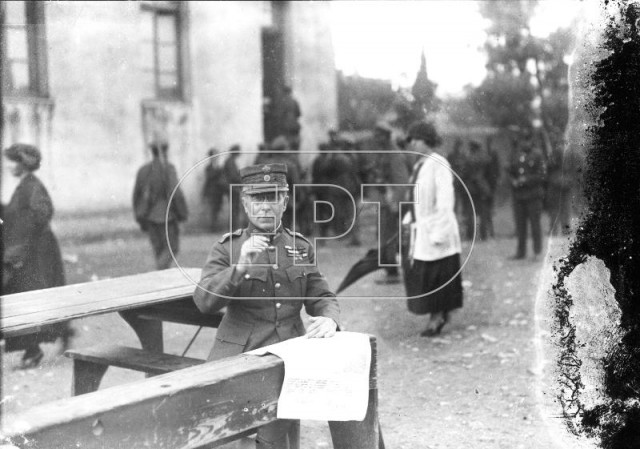 Ο ΑΞΙΩΜΑΤΙΚΟΣ ΙΩΑΝΝΗΣ ΣΑΓΙΑΣ ΜΕ ΠΟΛΙΤΙΚΑ (ΣΤΕΚΕΤΑΙ ΔΕΞΙΑ), ΑΡΧΗΓΟΣ ΤΩΝ ΕΠΙΣΤΡΑΤΩΝ ΣΤΑ ΝΟΕΜΒΡΙΑΝΑ ΣΕ ΑΝΑΜΝΗΣΤΙΚΗ ΦΩΤΟΓΡΑΦΙΑ ΣΕ ΕΞΩΤΕΡΙΚΟ ΧΩΡΟ.